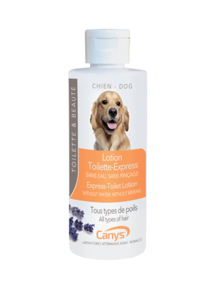 A loção Toilette-Express CANYS® foi concebida para limpar suavemente os cães e cachorros, tornando mais fácil escovar o pelo e ativar o seu brilho. Permite uma limpeza em todas as estações, sem água, sem enxaguamento e sem risco de resfriados. Ligeiramente alcoólico e com óleos essenciais naturais, tem ação tónica e desodorizante. Enriquecido com glicerina para uma ação hidratante na epiderme.